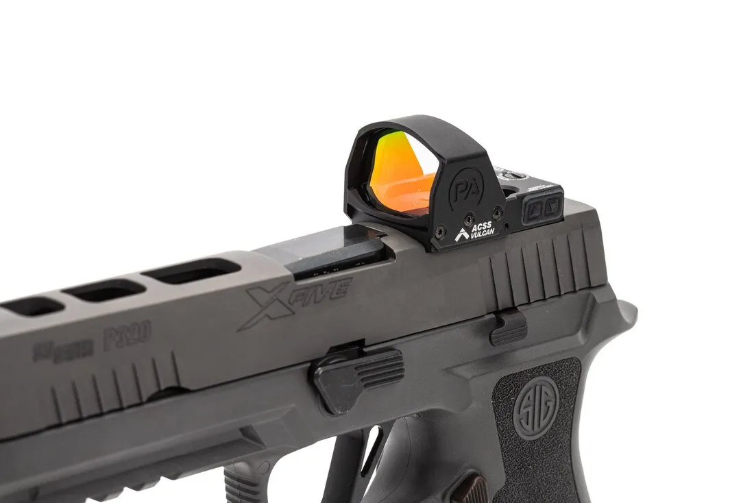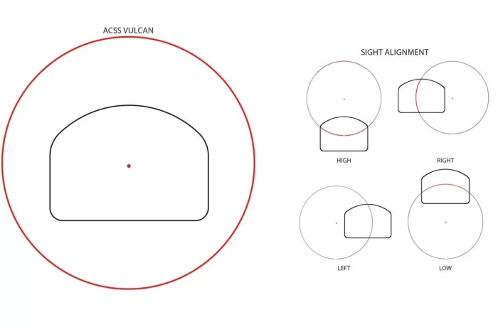 - Red Dot Bright® ACSS Vulcan Dot reticle (3 MOA center dot with 250 MOA outer circle)