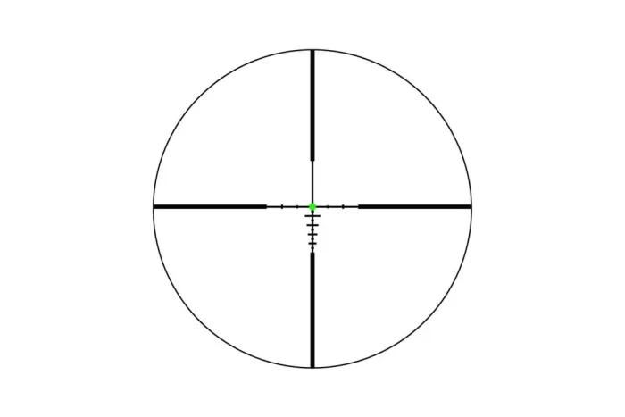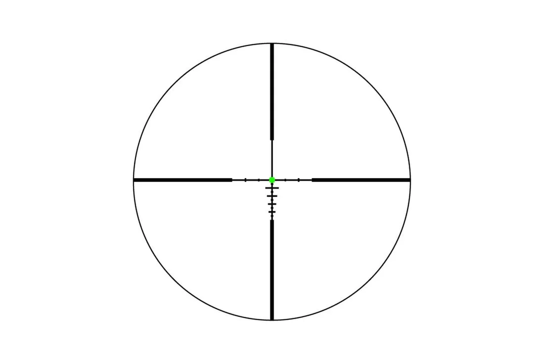The ACSS NOVA Fiber-Wire reticle with green illumination provides intense brightness and high-speed targeting capability. Designed for maximum visibility in all lighting, this reticle features a bold horseshoe and precise centre aiming dot powered by a fiber-optic system.