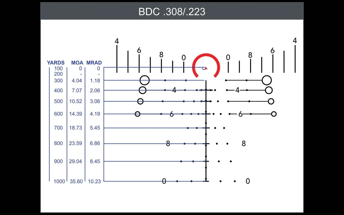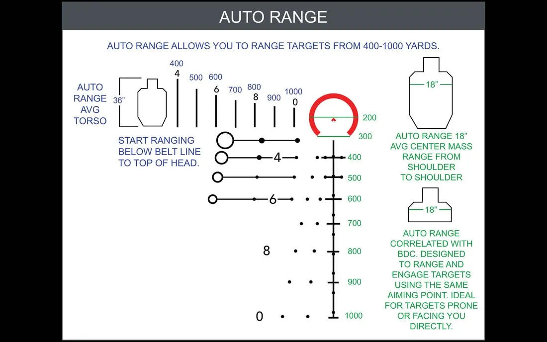It eliminates guesswork in range estimation with an integrated ranging system that provides fast and accurate distance reads, wind holds, and bullet drop compensation out to a full 1,000 yards. It is specifically tuned for common .308 Winchester loads but is also compatible with some .223 Remington loadings.