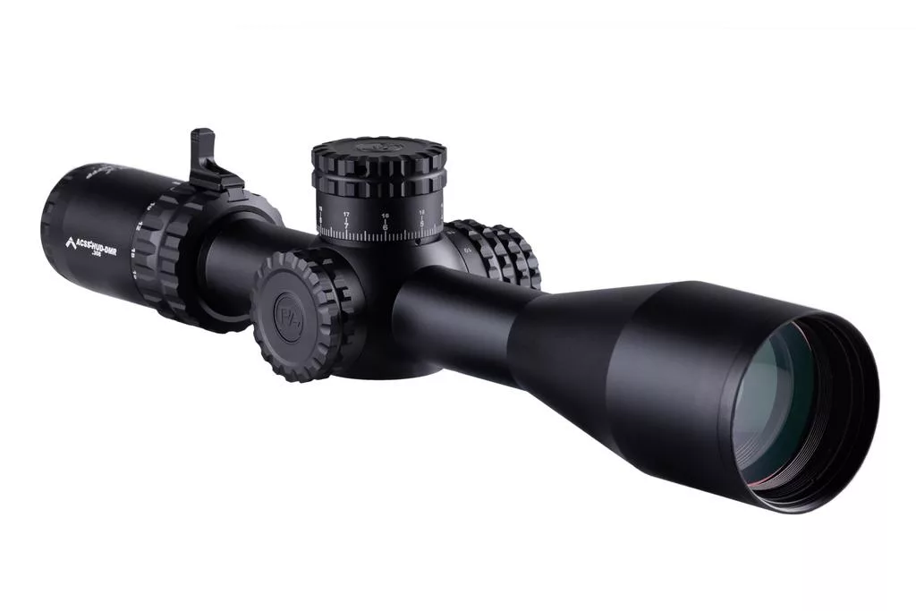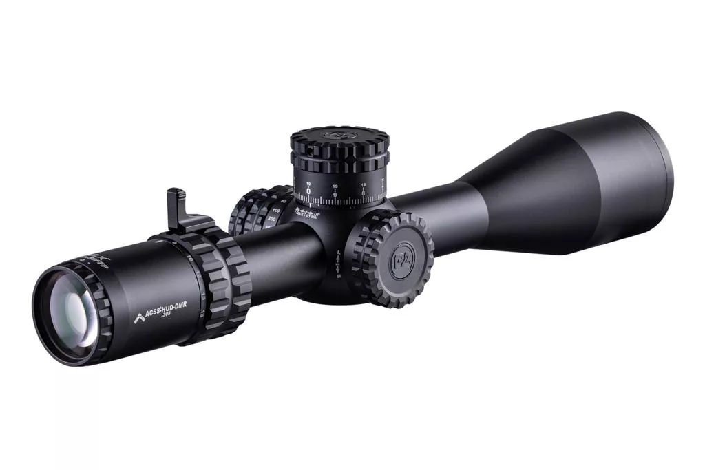 The 3-18x50mm is equipped with the ACSS HUD DMR .308 reticle, the most advanced moving target reticle in the world. Capable of guiding the shooter to first-shot hits on moving targets out to a never-before-seen 600 yards, the HUD DMR reticle includes holds for three different target speeds.
